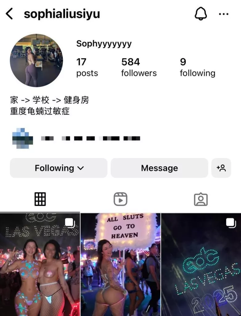 在拉斯维加斯举行的EDC电音节上,北美留学圈的顶级留学生魅魔Sophia刘,展现了她的魅力与个性。上周末,她身穿一袭大胆的服装,举着“婊子进天堂”的旗帜,成为了众人瞩目的焦点。她的室友更是爆料称,Sophia当晚几乎都沉浸在银乱派对之中。