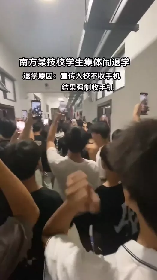 9月6日,广西南宁。近日,南宁技师学院在开学前发布通知,禁止学生携带手机。然而,开学后却开始没收学生的手机,这一做法引发了广大学生的不满与抗议。许多学生要求学校退还相关费用。