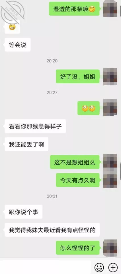 这几天看大姨子情绪不对,问她也不说,偶尔有些肢体接触还推推搡搡的,一直没找到合适的原因,今天把媳妇支走了本想好好问一下是啥原因,小弟是万万没想到啊,是这些天有意无意的吸引被我忽略了,新买的衣服穿给我看没有得到夸奖有点不高兴了,一番甜言蜜语可算是哄好了。