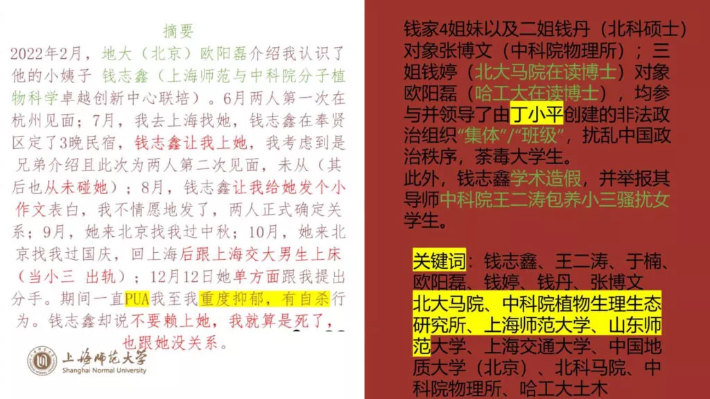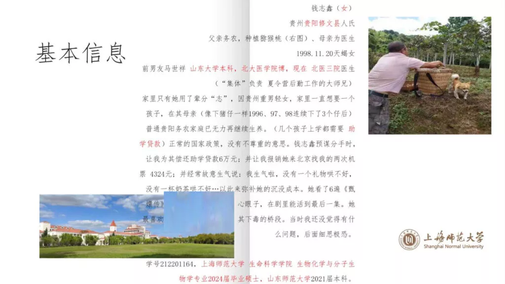 又是一位PUA大师与学术骗子的结合——上海师范大学的【钱志鑫】在恋爱期间不仅脚踏两只船,还涉及学术造假,撰写虚假论文,私生活不堪,长期对男主进行Cao控。在男主揭露真相后,他愤怒地制作了23页PPT,详细曝光了前女友的种种不端行为。