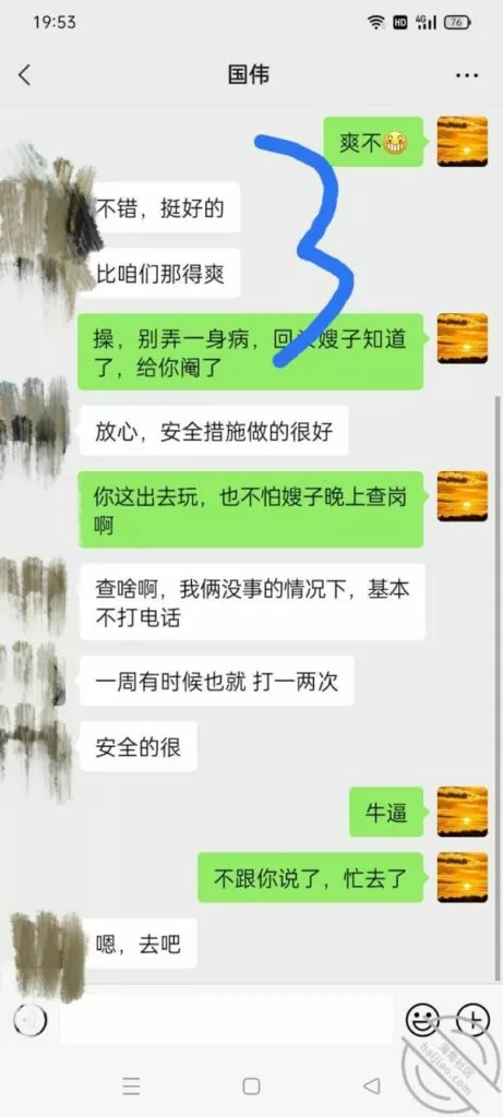 自从拿下清高B以后啊,真心自豪啊。只不过那天做i的时候清高B一直念叨我的老公呢?老公呢?让我想起了我的好大哥国伟。所以今天专门找伟哥聊了聊,伟哥还自豪的告诉我他去会所了,还要向我显摆老婆管不住他,笑死了。兄弟们我跟你们说,这就是有些男人的盲目自信,还要吹一下自己有多牛B,但是没想到帽子已经带上了