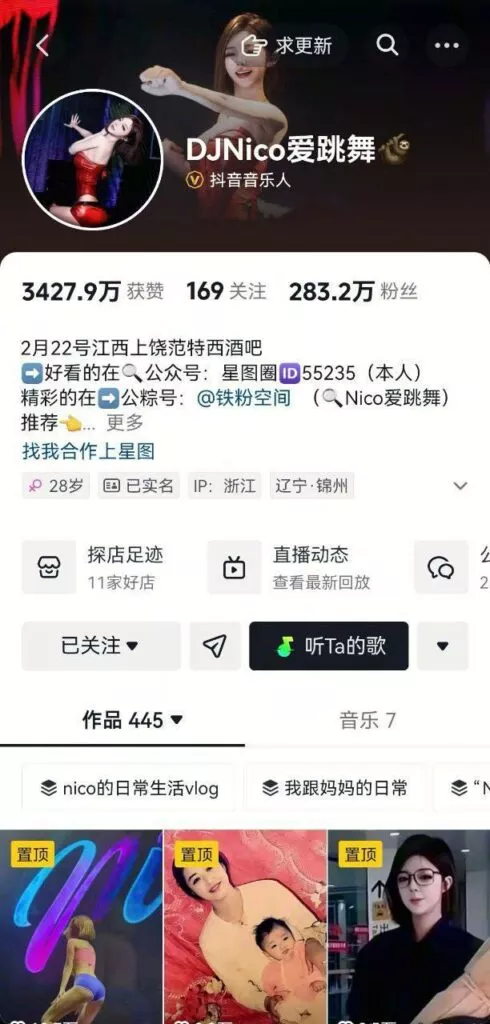 拥有280万粉丝的抖音网红DJ Nico以其舞蹈才华而闻名。她身材高挑,面容气质俱佳,宛如标准的御姐形象。不禁让人猜测,她前世到底积累了多少好运气,才会拥有如此出众的天赋。然而,近期却有关于她的负面新闻曝光,涉及线下陪睡和露脸视频的流出。