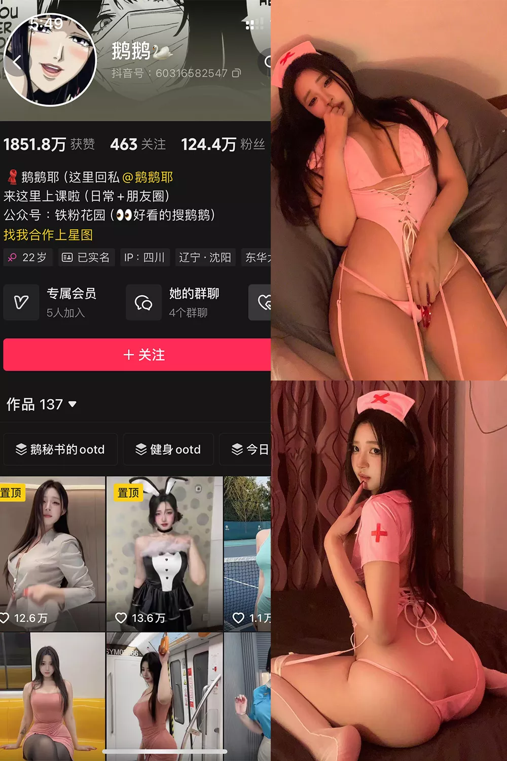 在本期“鹅鹅”的趣岛写真集里,您将欣赏到52张精选美图与15段短视频,展现她穿着粉色护士制服的性感魅力。她的紧身制服完美勾勒出迷人的曲线,特别是那令人瞩目的腰线和修长的腿部线条,简直让人心跳加速。每一张照片都透出她的甜美与妩媚,镜头下她时而撩发,时而投射挑逗的眼神,魅力四射,令人无法抗拒。而在视频中,她的每一个动作与表情都为这份诱惑增添了活力与动感。粉色护士服让她看起来既清新又性感,整个氛围仿佛在邀您共舞。绝对是一组不容错过的视觉盛宴,快来亲身体验“鹅鹅”带来的绝妙诱惑吧!