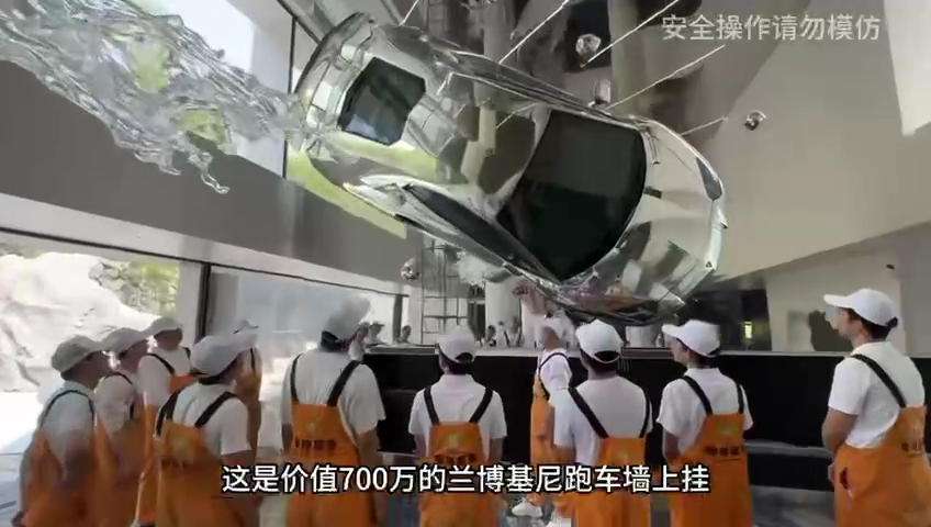 价值千万的豪车兰博基尼当做装饰物挂了起来