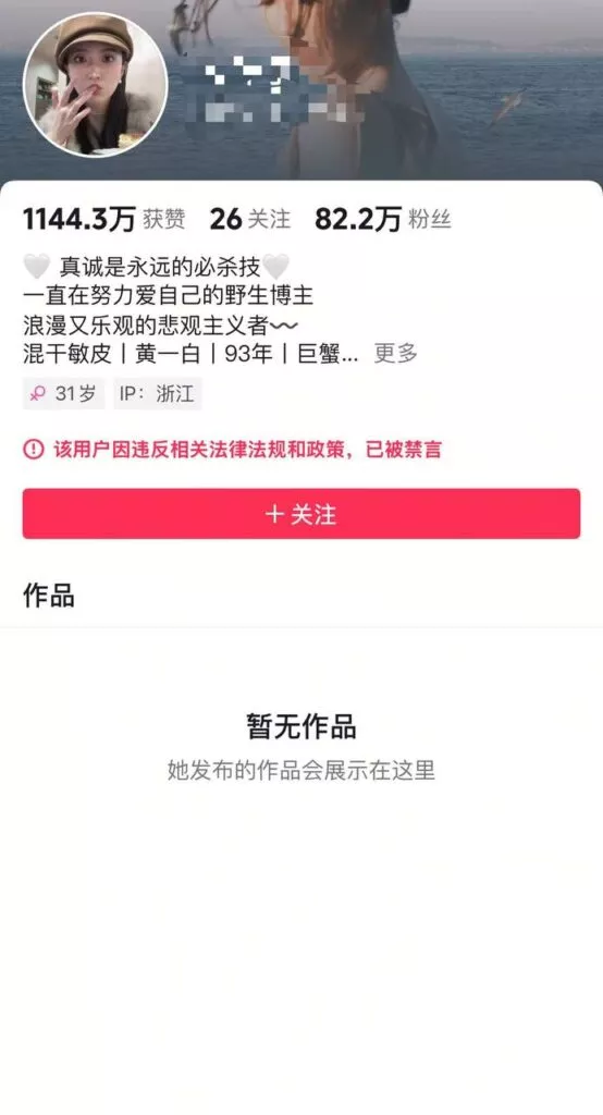 目前其抖音已经被禁言