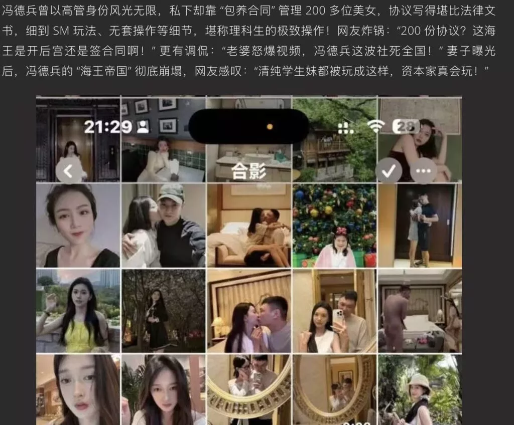 炸了炸了,真的是太逆天了,不愧是京爷,前小米总监冯德兵后宫妻妾成群,还签订了200分包养协议,协议内容堪比法律文书,从无套做i到sm玩法兼职细致入微,简单说,这就是200份包养协议,这才是顶级海王顶级时间管理大师。