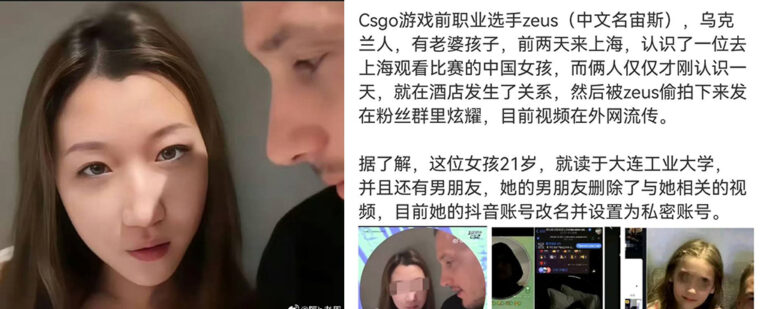 在去年12月的CSgo赛事上海Major期间,乌克兰职业选手Zeus在粉丝圈晒出与一位21岁上海女孩约会的视频。实际上,这名21岁女性已有男友,且选手Zeus也是已婚状态。此事发生后,引起互联网上对于easygirl一系列讨伐言论。
