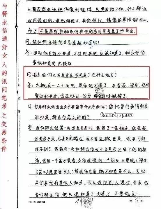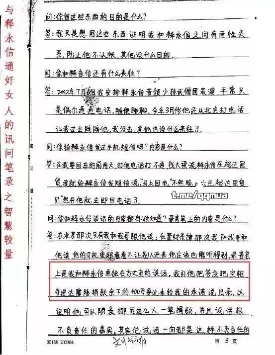 少林寺主持释永信大老婆被曝光?网传释永信通歼笔录供认多次嫖娼包养情妇