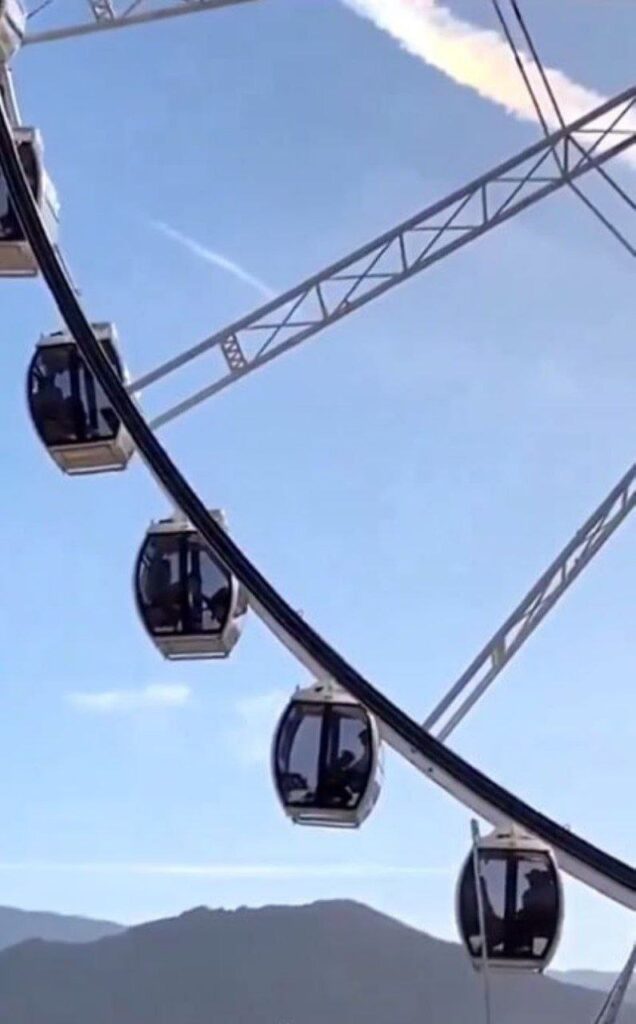 摩天轮刚缓缓启动,舱门尚未完全闭合,一对金发白人情侣便情不自禁地在这只全透明的吊舱里亲昵起来,所有举动尽收台下观众眼底。