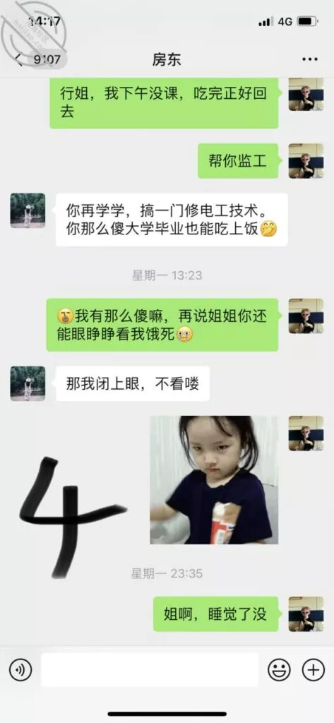 经过上次给房东家送小米了以后,我都不怎么敢跟房东聊天,生怕自己哪句话说的不对就把她搞火了,上次发帖搞忘记了记录发给你们看看,光顾着跟你们说忘记密码和送小米后续的事情一打岔就忘了,还有一个重要的信息,今天突然想起来了,你们帮我分析分析
