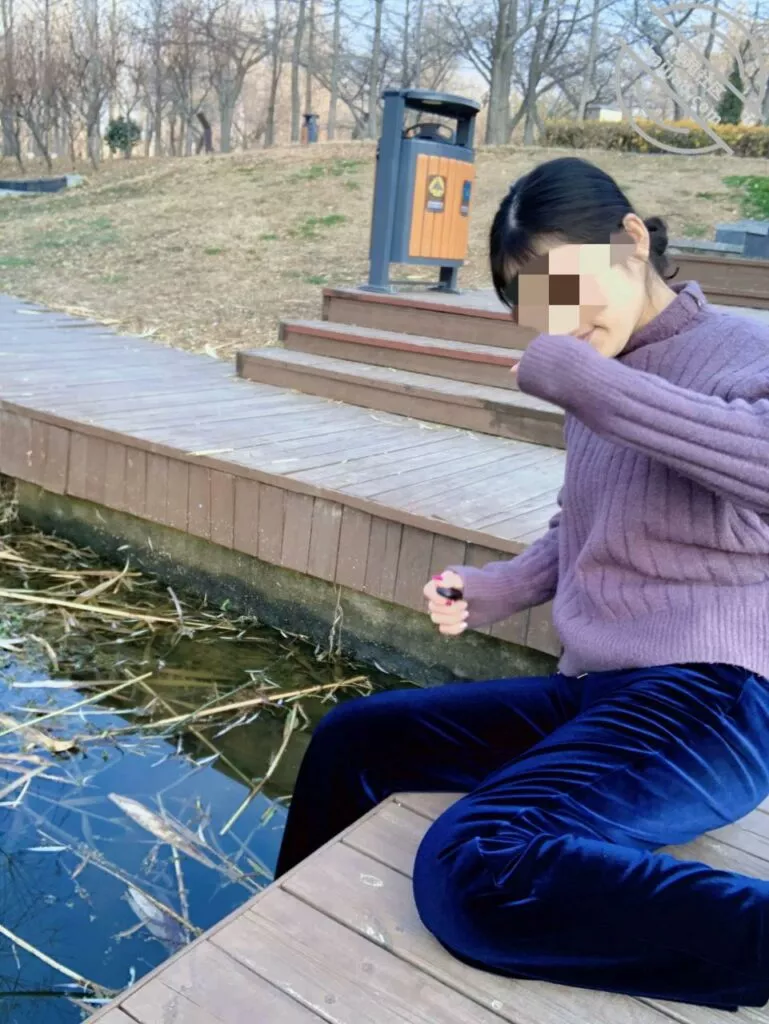 然后就坐一块拉家常,我就把手机背对着她,偷偷的按快门键,相机可以设置相机模式下锁屏键拍照,拍了几十张,这张是我最满意的春光乍现,就是移动速度有点快,这也是最高清的一张曝光图