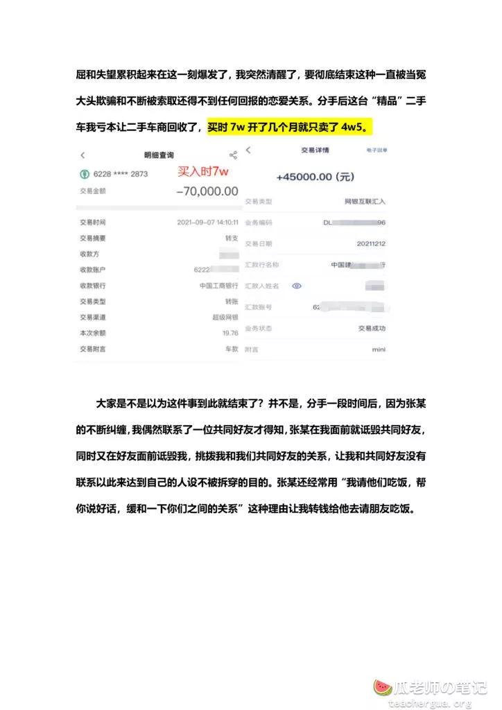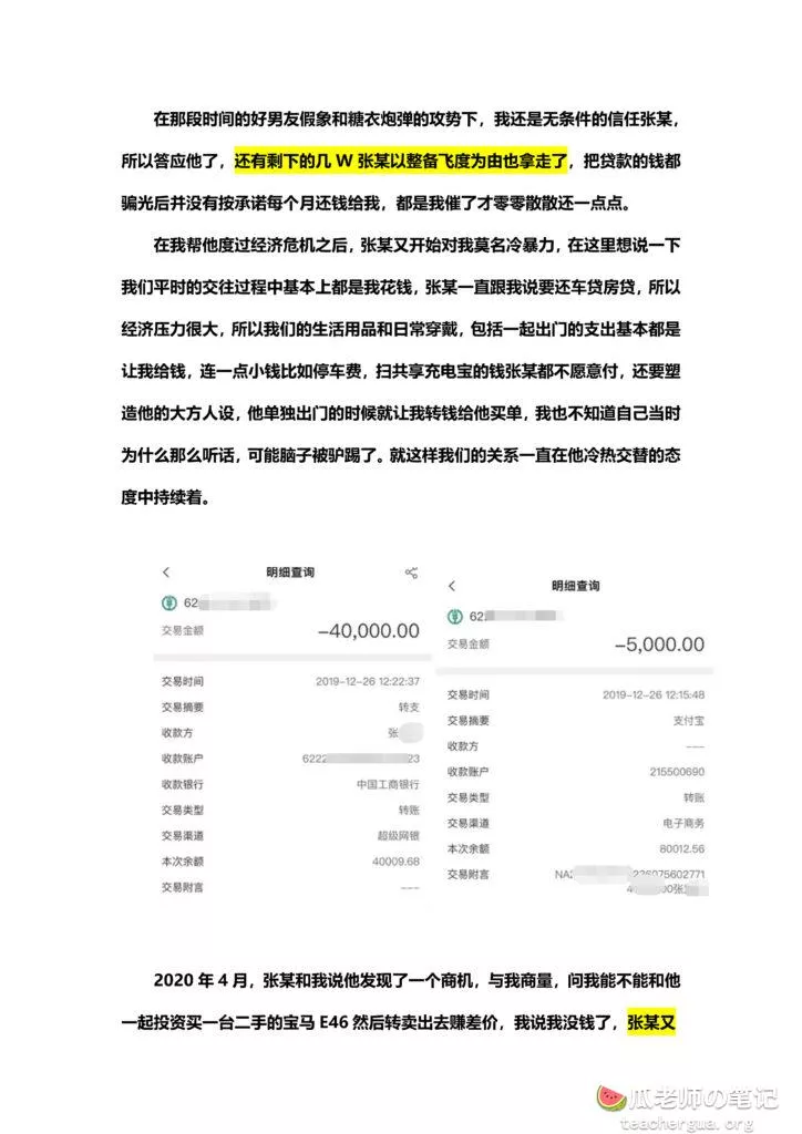 打扰大家一些时间,有些事想跟大家分享一下,倾诉一下我 EX 惠州某车圈张某的渣男