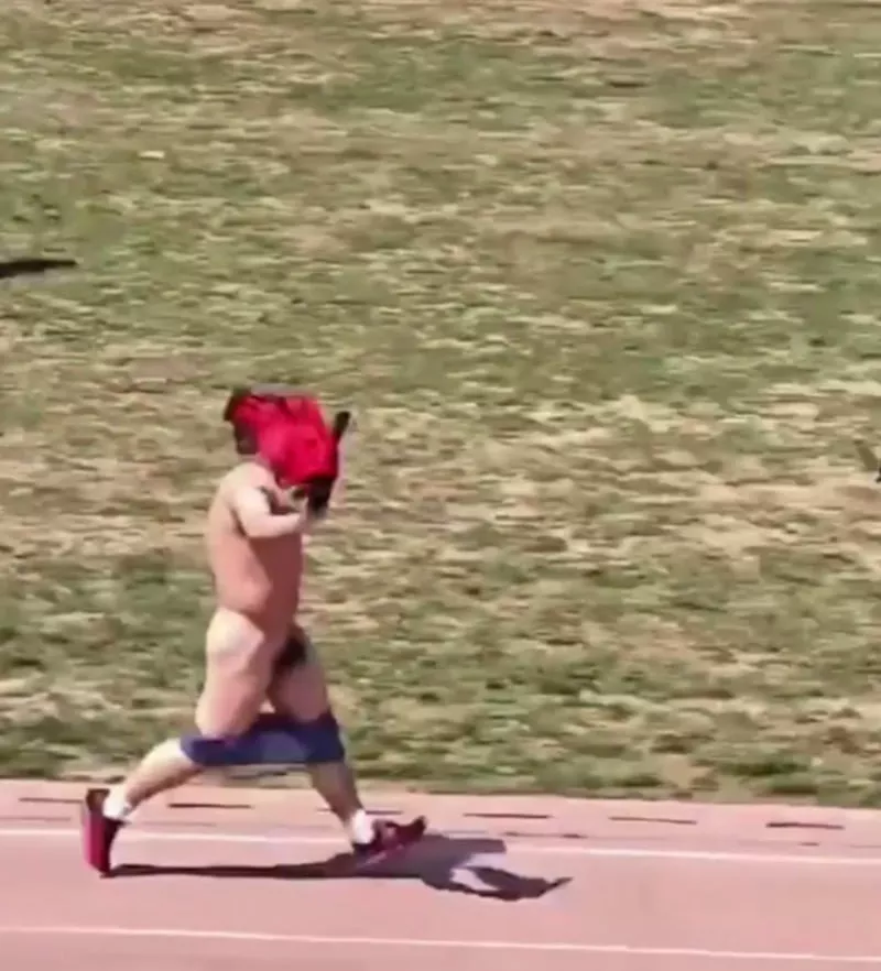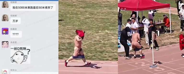 在河北石家庄邮电学院的运动会上,5000米赛跑即将产生冠军。在距离终点线仅有50米的时刻,一位名叫何林明的选手令人震惊地开始脱衣,毫无顾忌地果奔冲刺向终点。此时的场面令人瞩目,观众们无不为之惊叹。