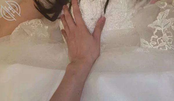 让从小就没上台经验的姐姐有些慌乱,手也不自然的去揉捏着婚纱。
