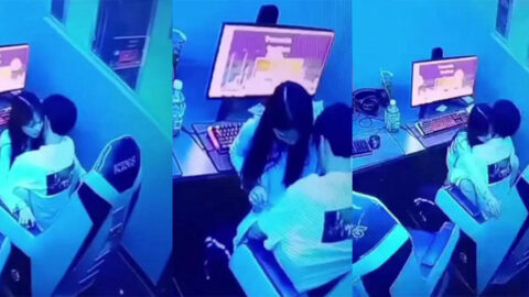 河南洛阳摩卡网咖情侣包间doi男秒射女生气监控室激情解说