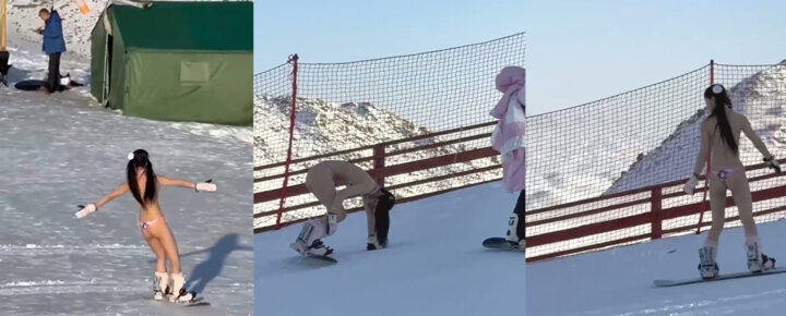 太卷了!吉林雪场惊现福利姬双马尾LL嫩妹比基尼雪道滑雪