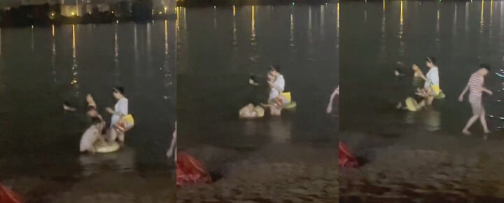 玩的就是现场?逆天情侣海水浴场当众水中做i全体围观震惊体