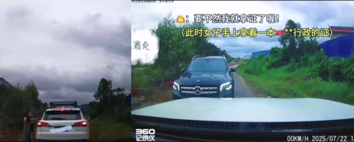 广西防城港亮证姐登热搜!奔驰女司机亮证威胁对向车辆让路
