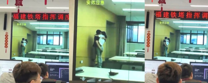办公室激情被迫公开?安徽铁塔调度中心监控意外拍到男女激情画面