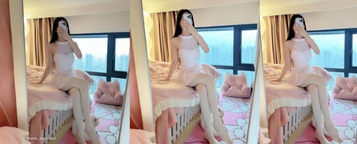 专为美少女设计:柔和粉色系连衣裙,纯白蕾丝袜,修长美腿的优雅写真集(共41张图片)